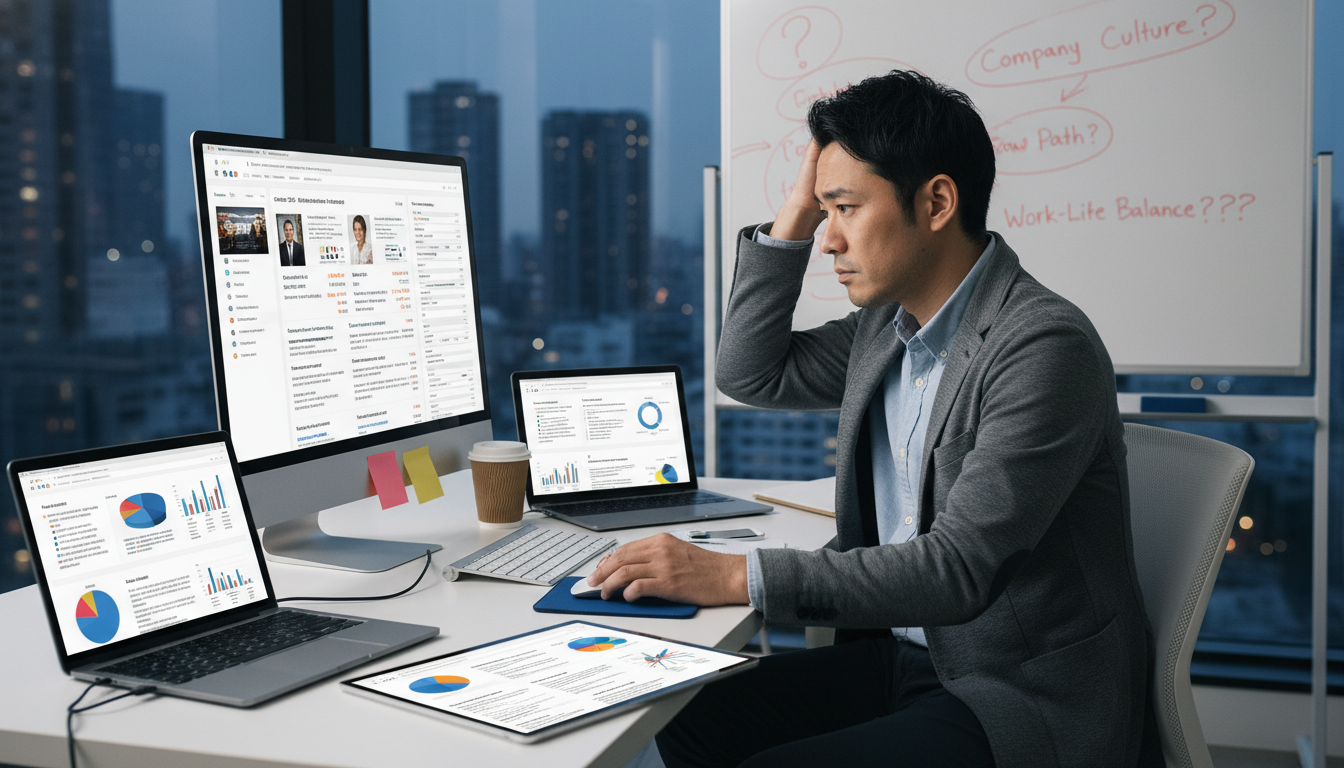 提示された年収が高いからという理由だけで転職先を決めると、入社後に後悔するケースが多くあります。Webマーケティング業界では、高年収を提示する企業の中に、長時間労働が常態化していたり、成果に対するプレッシャーが過度に強かったりする職場も含まれています。